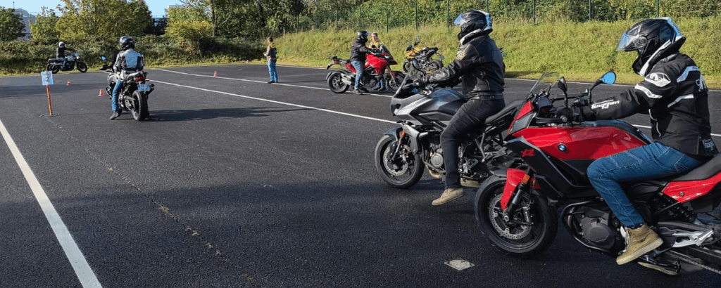 Les précieux conseils du moniteur se sont avérés très utiles ! Je parviens désormais à béquiller, à me garer très proprement, alignée à mon voisin, et même à 4 motos sur une seule place de parking ! Le tout sans appeler à l’aide, si ce n’est pas la classe ça 🙂 Pour ma part, c’est un énorme progrès !