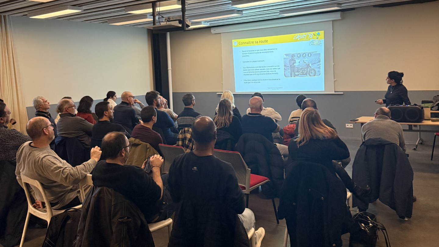 A mon tour d’être désignée comme rédactrice du CR « Equipement du Motard + Expérience du comportement » de ce 7 décembre. Une journée bien à l’abri de la pluie battante, sans pratique moto, mais avec l’accueil toujours très réconfortant de l’équipe CASIM 78.