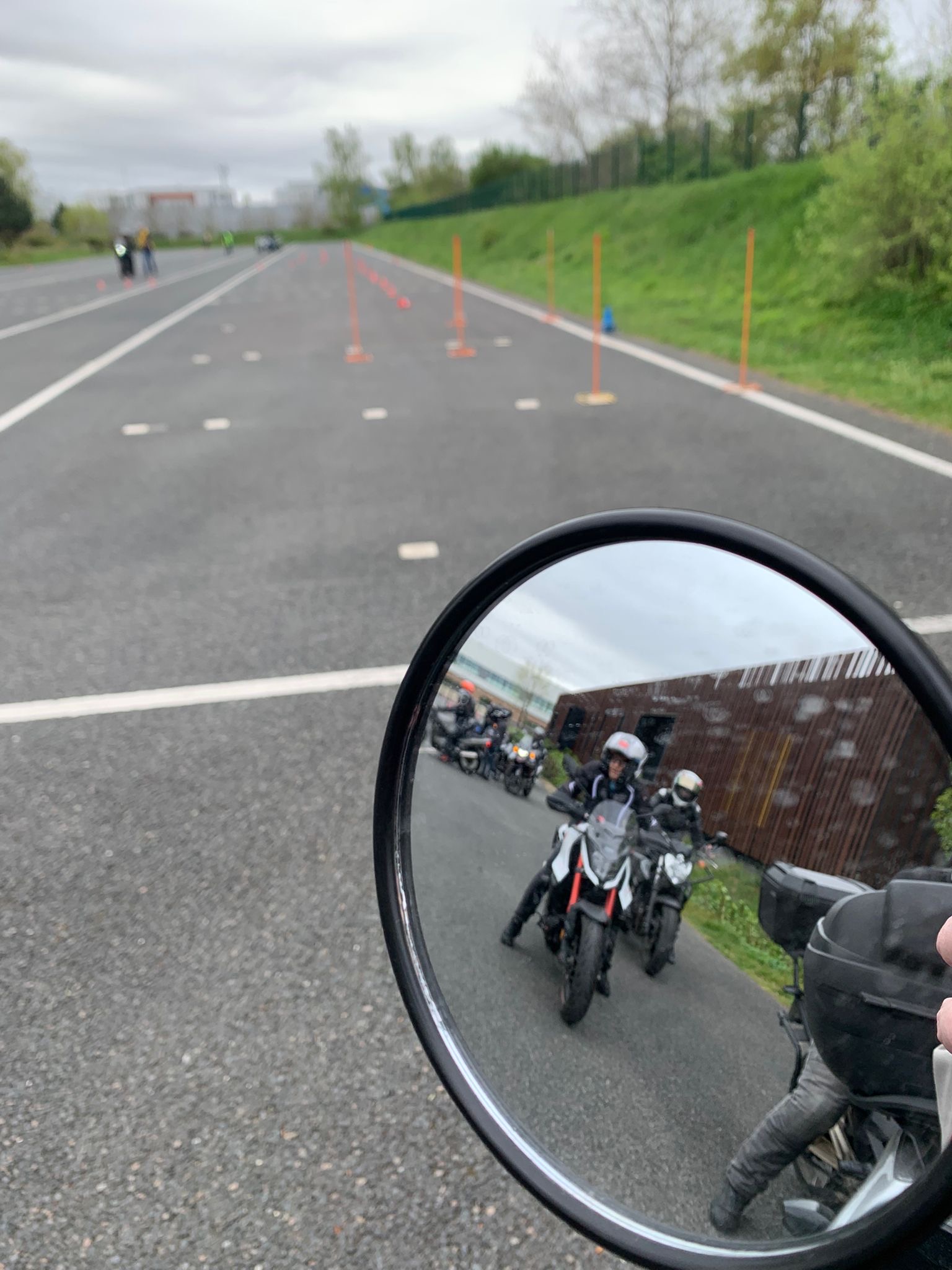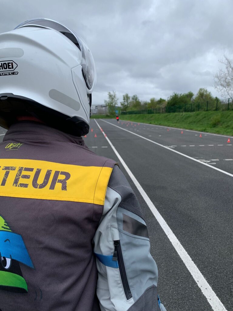 On démarre avec le classique carrousel, puis une course de lenteur pour bien gérer le point de patinage avec un bon régime moteur et un bon dosage d’embrayage + frein arrière 👌